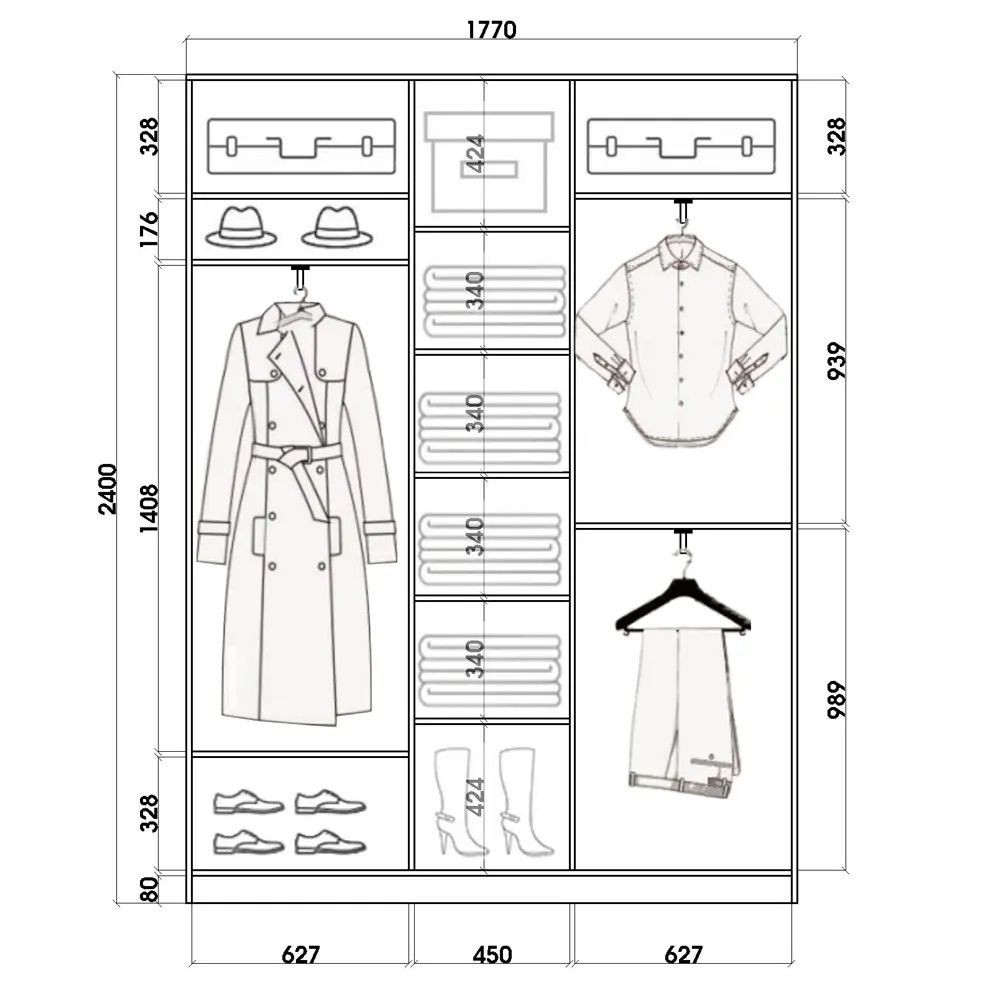 Размеры (Ш*В*Г)(мм): 1770*2400*420